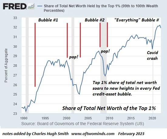 From an informed historical perspective, all the predictions of a steadily rising stock market and improving economy look rather laughable, given the many extremes we conveniently write off as inconsequential. Sure, extremes can become more extreme without the system blowing a gasket, but to predict that extremes will have no consequences because we have safely stable analogs firmly in hand is to tempt fate with excessive hubris.
