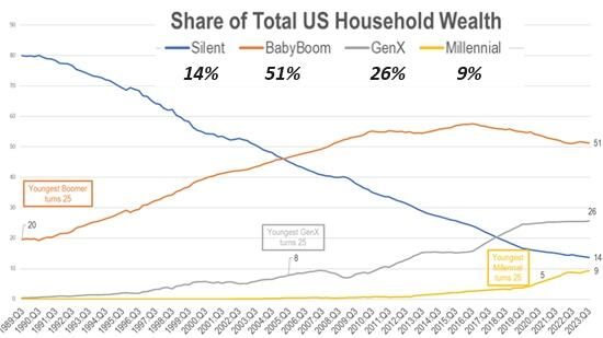 The generations who bought homes 25 or more years ago have accumulated most of the wealth. When houses increase in value ten-fold while wages rise by a third, this is the result: