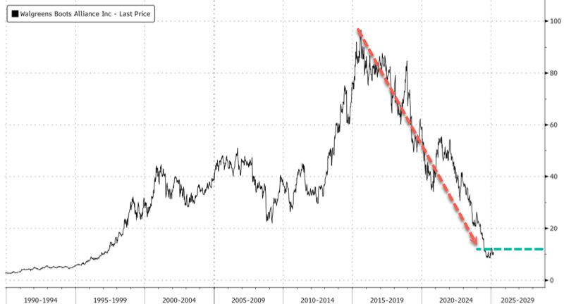 The struggling pharmacy chain has faced a decade of sliding margins in its core prescription business after it doubled down on its retail pharmacy operations. Meanwhile, competitor CVS Health diversified into insurance and pharmacy benefits. A move into primary care failed to reverse its fortunes.