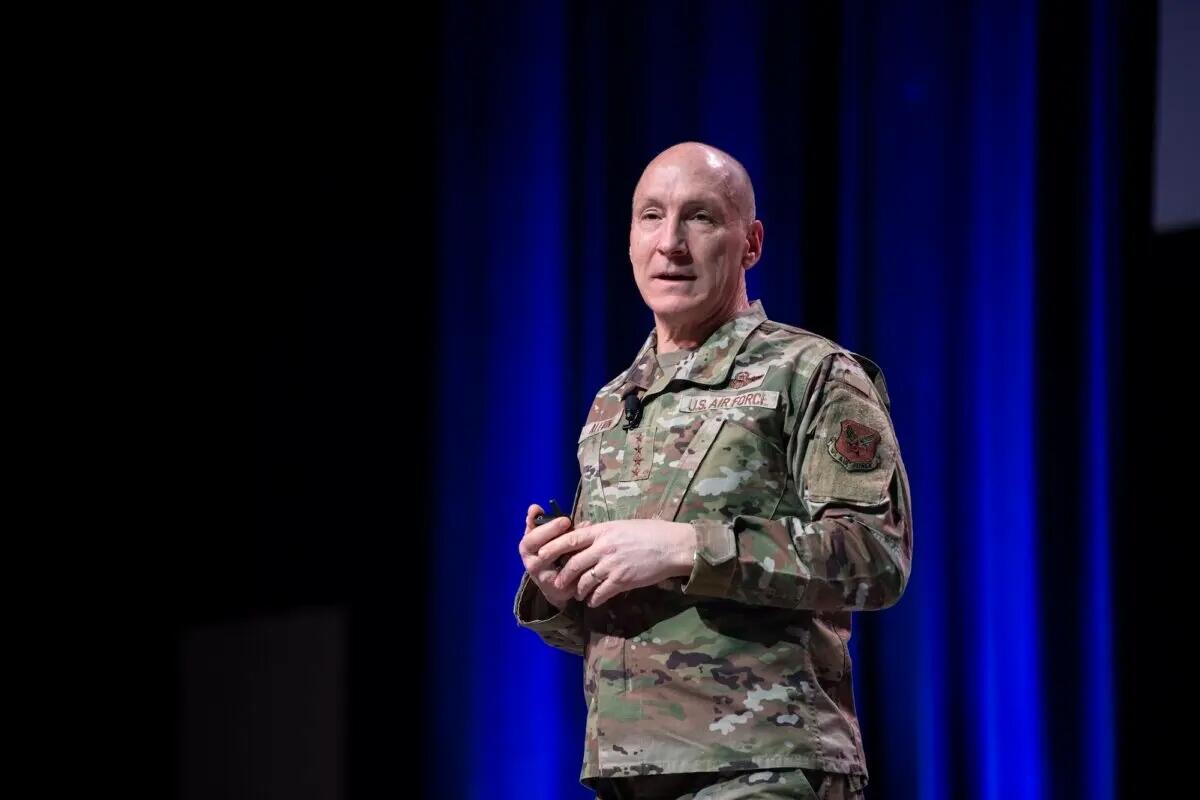 Air Force Chief of Staff Gen. David Allvin gives a keynote address at the Air and Space Forces Association Warfare Symposium in Aurora, Colo., on March 3, 2025. Courtesy of U.S. Air Force/photo by Staff Sgt. Adam R. Shanks