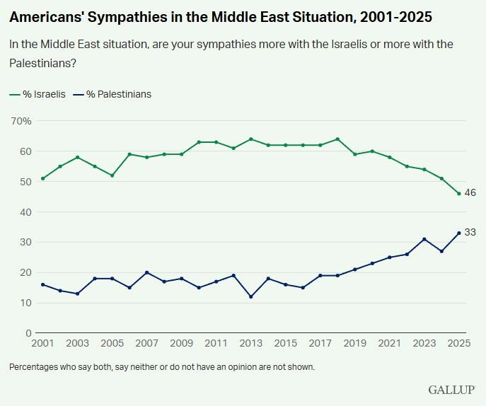 Less Than Half Of Americans Now Sympathetic Toward Israelis