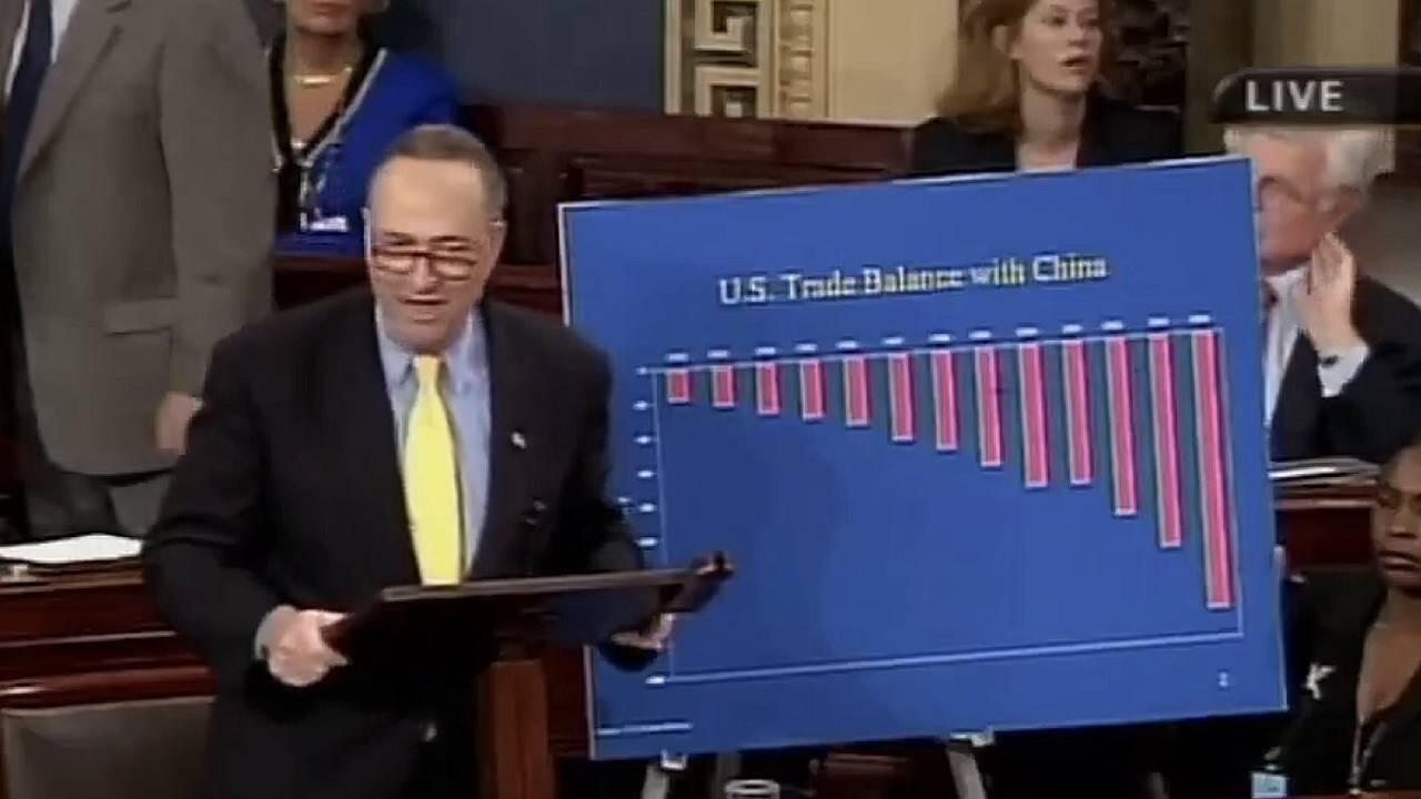 Last week we highlighted how Schumer, Nancy Pelosi and Bernie Sanders all passionately advocated for heavy tariffs on China.