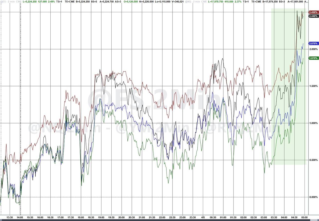 US Futures Surge Following TsySec Bessent Comments; “President Has Maximum Negotiating Leverage”
