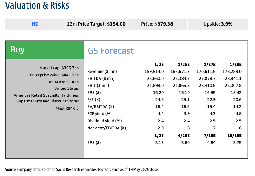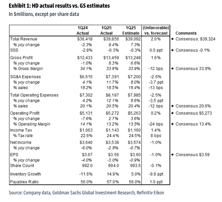 Here are Home Depot’s actual 1Q25 results versus estimates via Goldman.