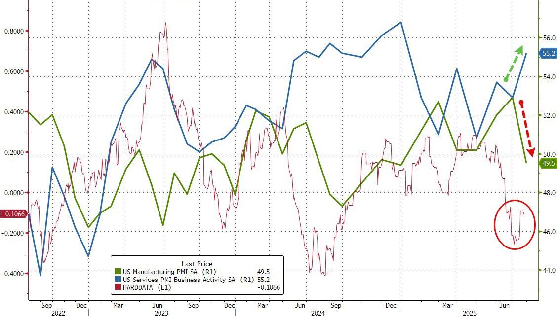 At the same time, US Services soared to 55.2 – its highest since Dec 2024