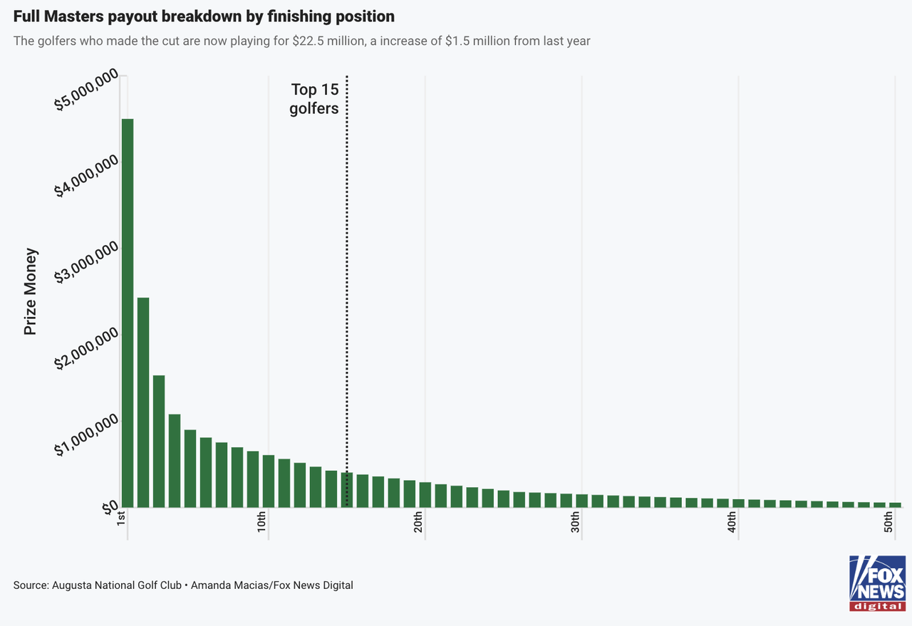Runner-up Scottie Scheffler took home $2.43 million. Even deeper in the field, players who made the cut but finished outside the top 50 earned at least $55,250, with payouts tapering from there. Those who missed the cut still walked away with a guaranteed $25,000 each, Fox Business reported.